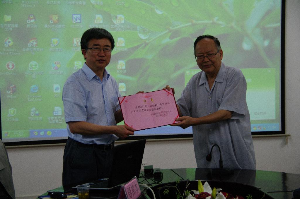 张闻玉教授对彭邦本教授深厚的古汉语基础、详实的文本分析、广引博学的学术风格给予了高度评价,并向彭教授颁发了兼职教授聘书。张教授启发在场人员:要学好中国文化,要懂得先秦史,要到《论语》和儒家思想中去寻根,要学好、写好方块汉字。