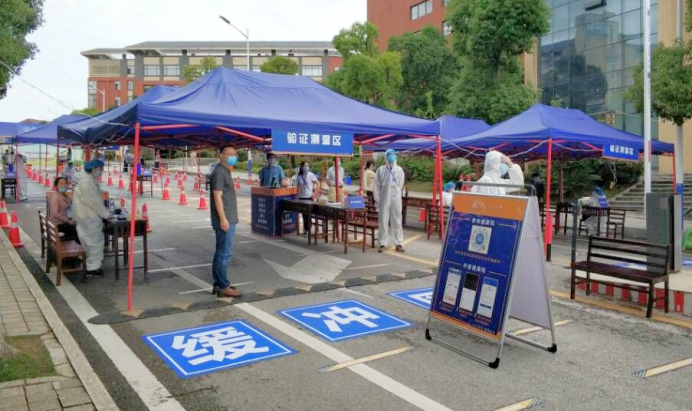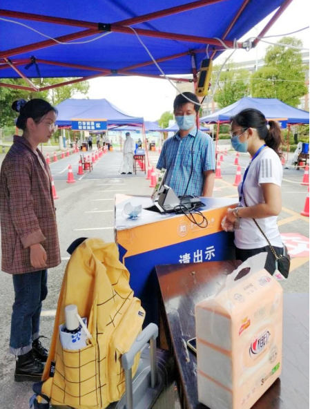 上午10时太阳成集团tyc234cc的老师们在东门处的验证测温区就位,迎接同学们的到来。返校员工们通过防疫健康信息扫码、体温测量、证件查验、行李消毒、口罩更换等环节进入到久违的校园里。