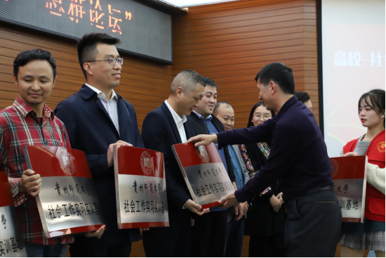 为加强高校和社会组织合作,促进社工专业人才培养和专业发展,公司于10月26号下午在花溪校区会议中心举办高校—社会组织社工专业人才联合培养“思雅论坛”。本次论坛由公司主办,贵阳市花溪区国仁社会工作发展中心和太阳成集团tyc234cc新时代贵州文明实践协同研究中心协办。来自省内8所高校社工本科专业和专硕点负责人及专任教师,11家省内知名社会组织负责人及骨干,以及公司社工专业毕业生代表、在校本科生和研究生等近200人参会。围绕论坛总主题“高校-社会组织社工专业人才联合培养”,与会嘉宾就“校社联合的社工专业实习实践创新”“校社联合的社工人才供需对接创新”以及“校社联合的社工团队队伍建设创新”三大关乎社工专业发展和团队建设的重大议题进行了深入交流,为公司社工专业人才培养模式改革和一流专业建设提供了宝贵实践经验和建设思路。论坛期间,公司还为11家共建社会工作实习实训基地的社会组织进行了授牌。