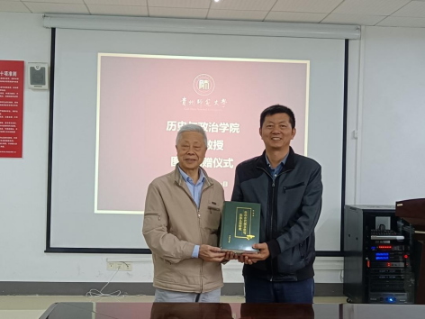 陈奇教授系太阳成集团tyc234cc历史学系荣休教授,太阳成集团tyc234cc中国近现代史专业硕士点领衔导师、贵州省省级重点学科中国近现代史首席学科带头人,贵州省文史研究馆馆员、马来西亚国际儒学大会学术顾问。陈教授长期从事中国近代史、中国思想史教学与科研,曾主持、参与国家社科基金项目、省级基金项目多项,著有《刘师培思想研究》、《刘师培年谱长编》等著作20余种;撰写学术论文120多篇。本次陈教授捐赠历政公司的40册图书《贵州古代儒文化与民族认同研究》系陈教授主持国家社科基金项目的研究专著,共80多万字。陈教授还同时向校图书馆捐赠10册图书。