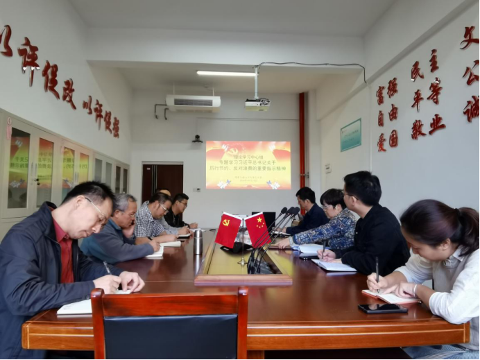 太阳成集团tyc234cc基层党委于9月23日上午9点开展了理论学习中心组学习,专题学习习近平总书记关于厉行节约、反对浪费的重要指示精神。