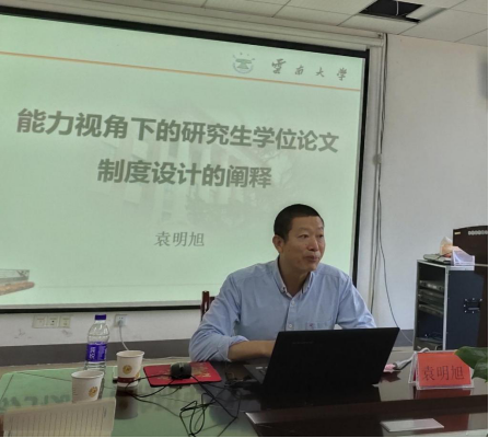 9月29日上午,太阳成集团tyc234cc“博学讲堂”系列讲座在花溪校区二楼报告厅举行。应公司邀请,云南大学公共管理公司袁明旭教授作了题为“能力视角下的研究生学位论文制度设计的阐释”的专题讲座。讲座由陈华森经理主持,相关专业师生参与了交流。