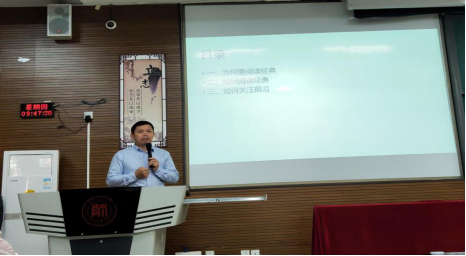 其次,郭教授阐述了如何阅读经典。他认为阅读经典首先要超越问题及语言的局限,要尽可能地阅读经典原本,尤其是作者母语文本,这就要求我们广泛学习各种语言;其次,阅读时要精其选、解其言、知其意、明其理;此外,按价值理性和目的理性的要求,老员工需要阅读四种不同类型的经典,分别是哲学类、文学类、史学类以及社会科学类;大学期间要多阅读经典并确定不同阶段阅读的重点;总之,“经典非买不能读也!”、“经典之作非反复阅读不可也!”。