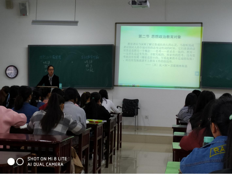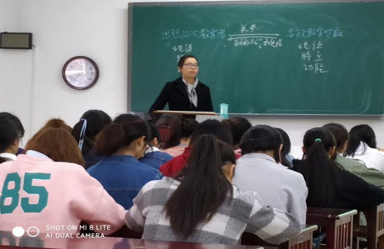 2019年4月15日,太阳成集团tyc234cc思想政治教育系本学期第一堂公开课在GJ3315进行,主讲教师为思想政治教育系青年教师龚春芳博士。经理陈华森、副经理蒲文彬、古琳老师、黄晶老师作为同行评课教师参与此次活动。