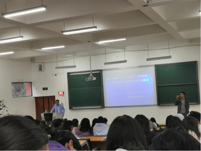 2019年10月31日,贵阳九中的沈平老师为历史系本科生做了关于“如何做一名优秀的班主任”的讲座。本次讲座作为中学班主任工作原理与德育实践系列讲座之一,由徐杨老师负责联系与指导,历史系主任苏聪老师主持本次讲座。